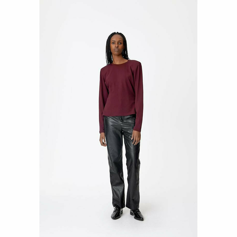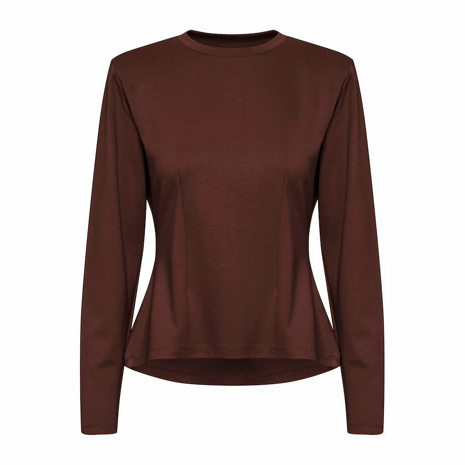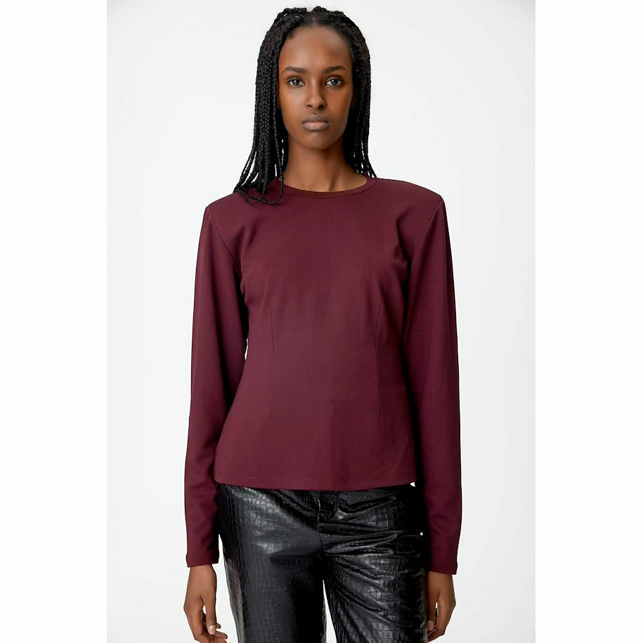 Långärmad top med rundad hals & axelvaddar. Figurnära modell med dekorativa sömmar. Tillverkad i en mjuk viskosblandning.