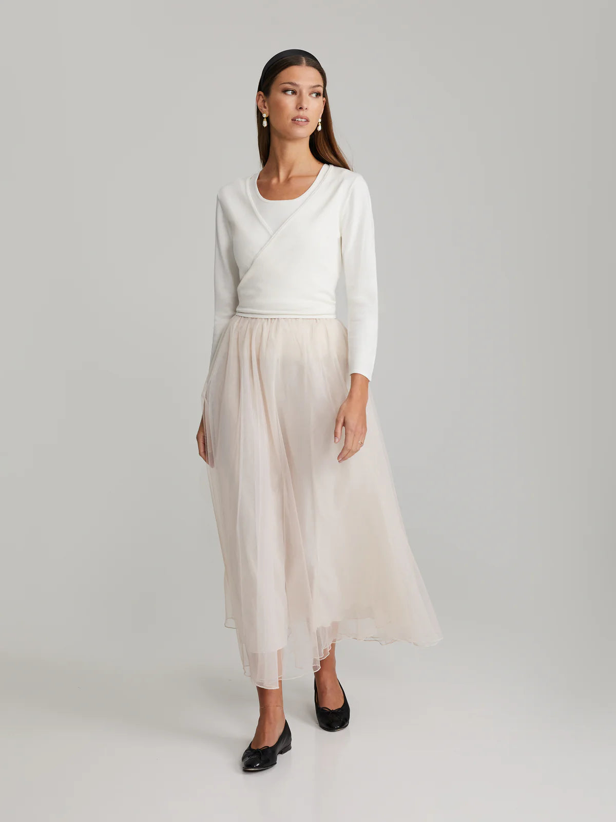 Vacker omlott top i ett mjukt material i 80% viskos. Finns i två färger, vit & svart.