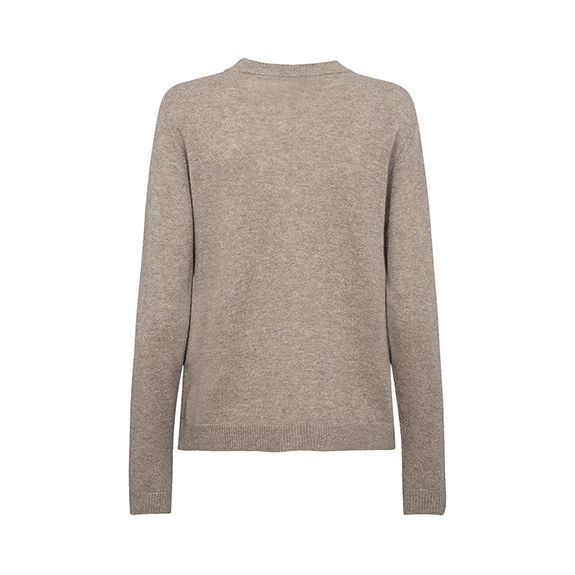 Ljusbrun finstickad kofta i 100% kashmir. Rundad hals & stora knappar framtill. Lång ärm med ribbad mudd vid ärmslut, samt ribbad mudd nedtill vid linningen på koftan. Finns i två färger, grå & brun.