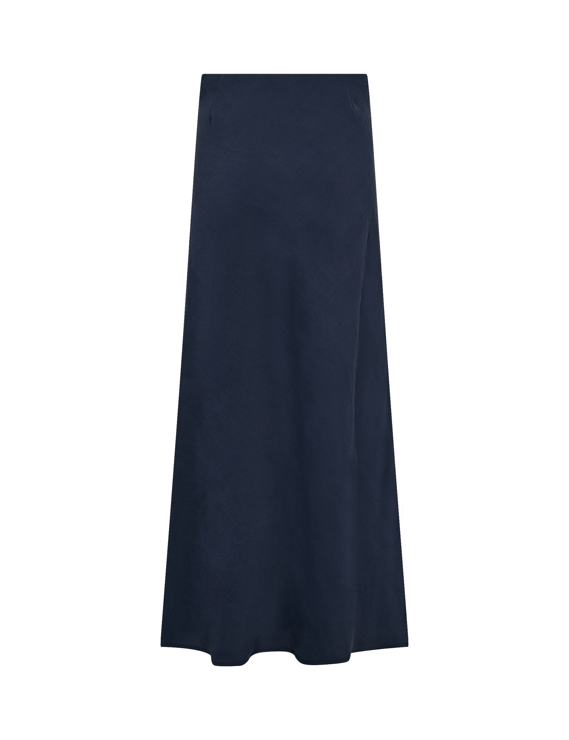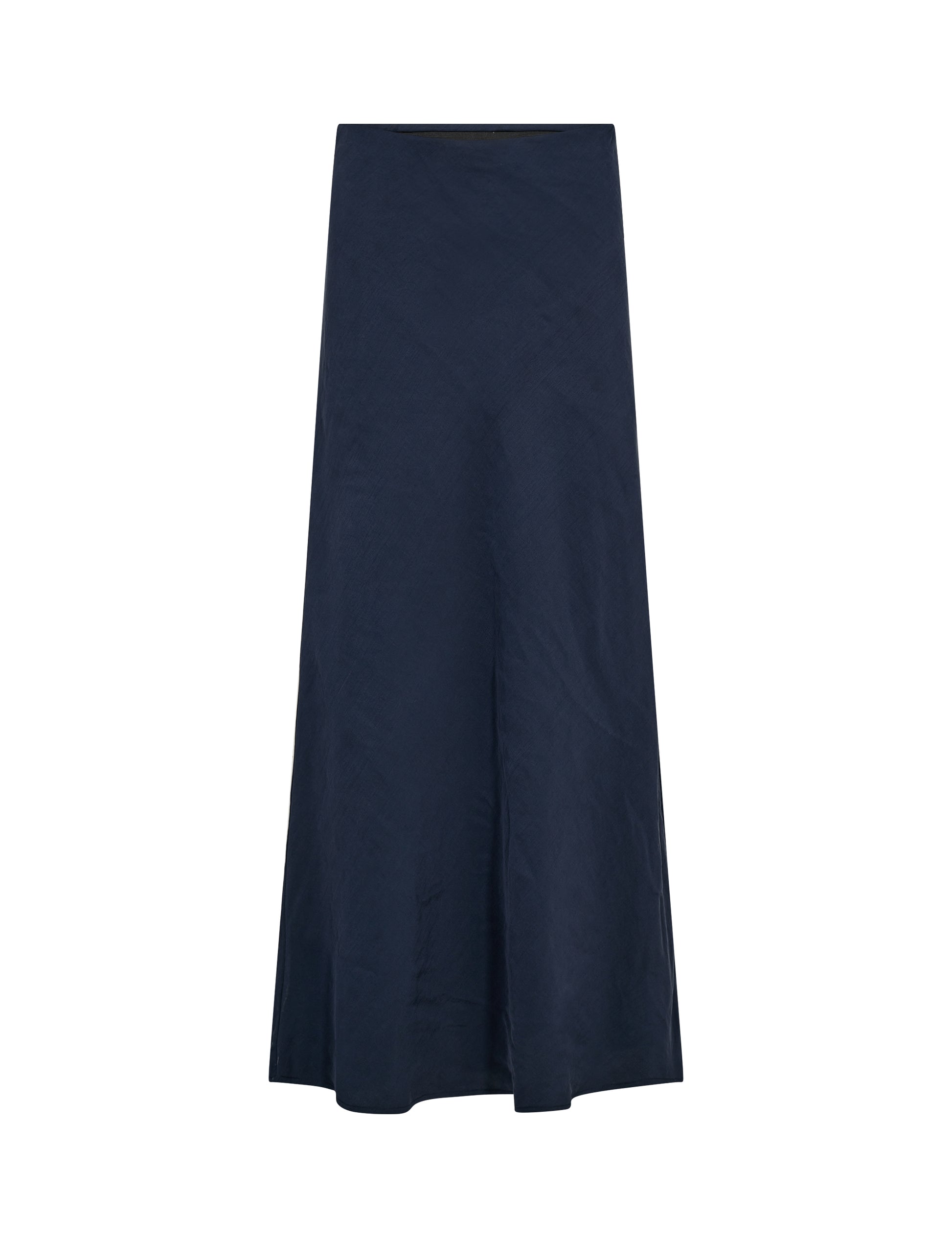 Lång kjol i en fin mörkblå färg. Hög midja med resår. A-formad modell som klockar sig fint. Tillverkad i ett mjukt härligt material i 89% modal.