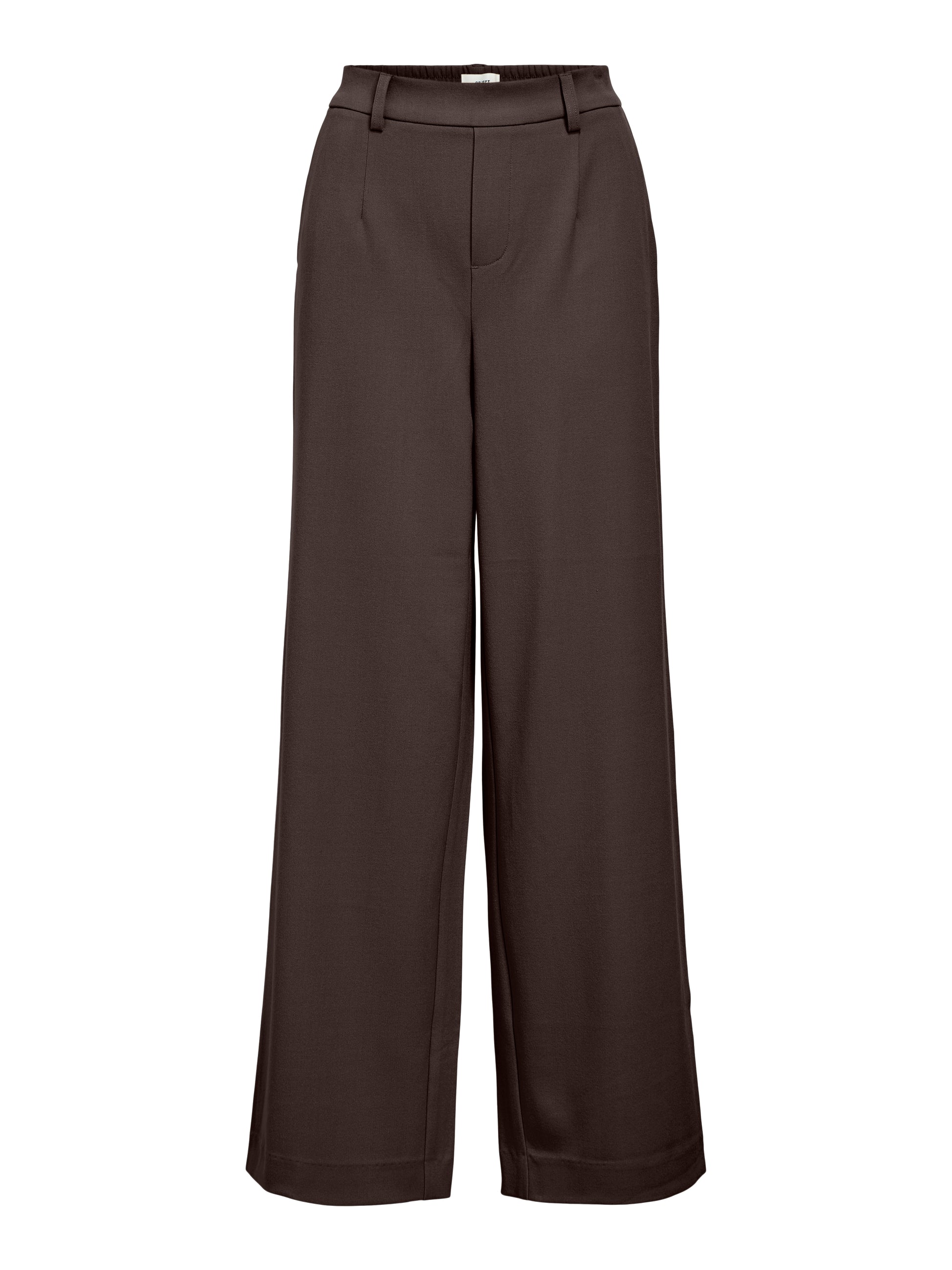 Fin brun byxa med lång raka ben. Resår & hällor vid midjan. Dekorativa igensydda fickor baktill.