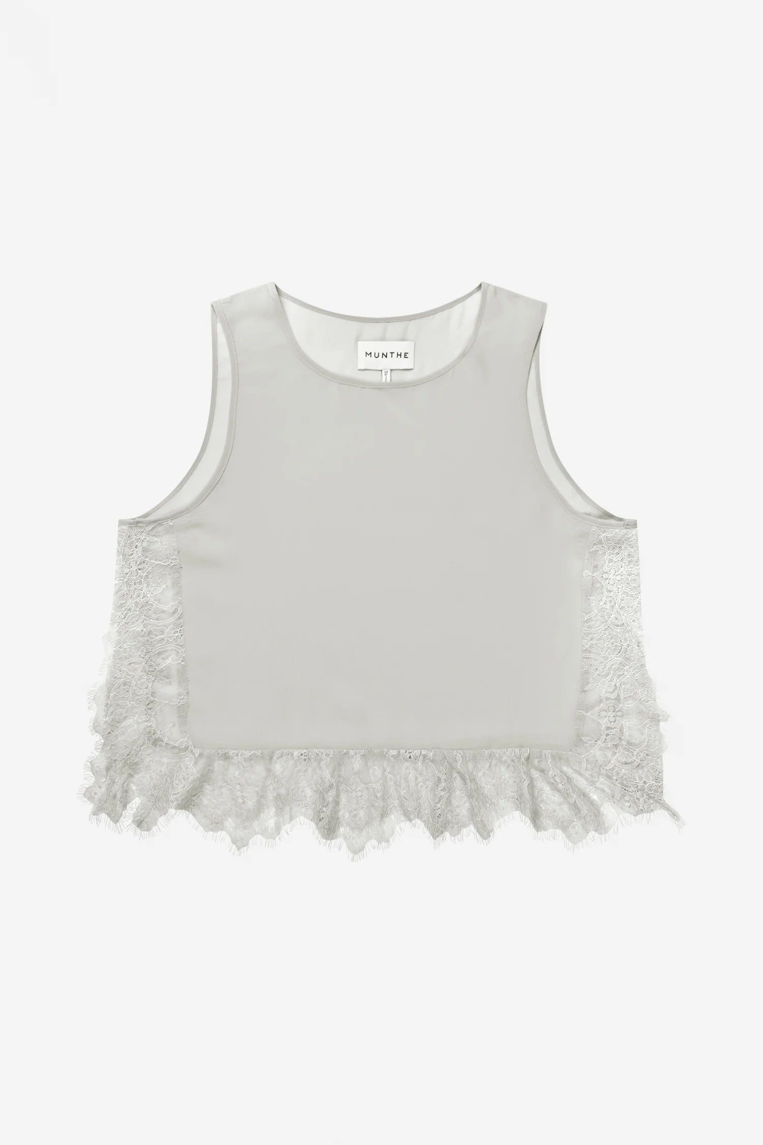 - Toppen är tillverkad i ett tunt skirt material med fina spetskanter. Toppen har en lös passform och är något längre än t-shirten, detta för att spetsen ska kunna synas vid lager-på-lager.