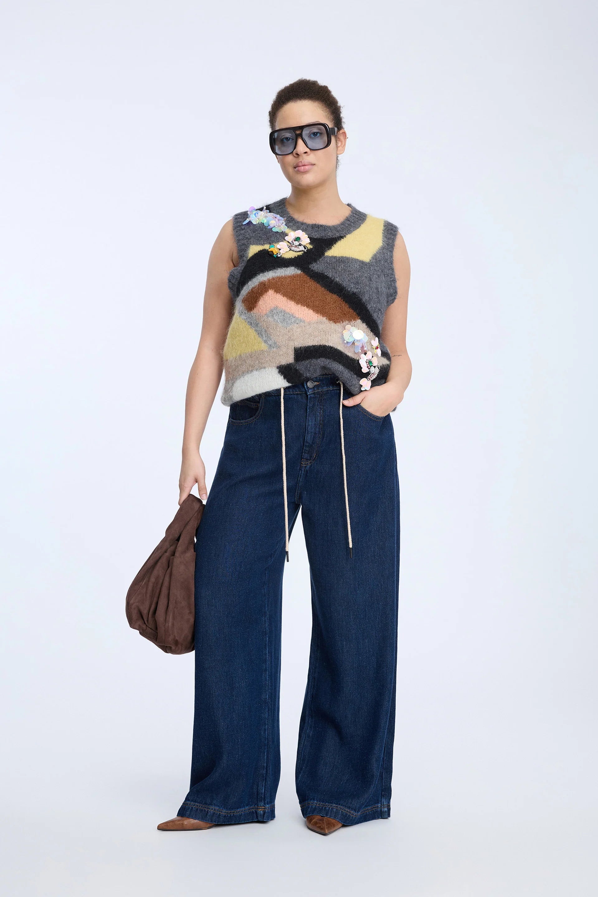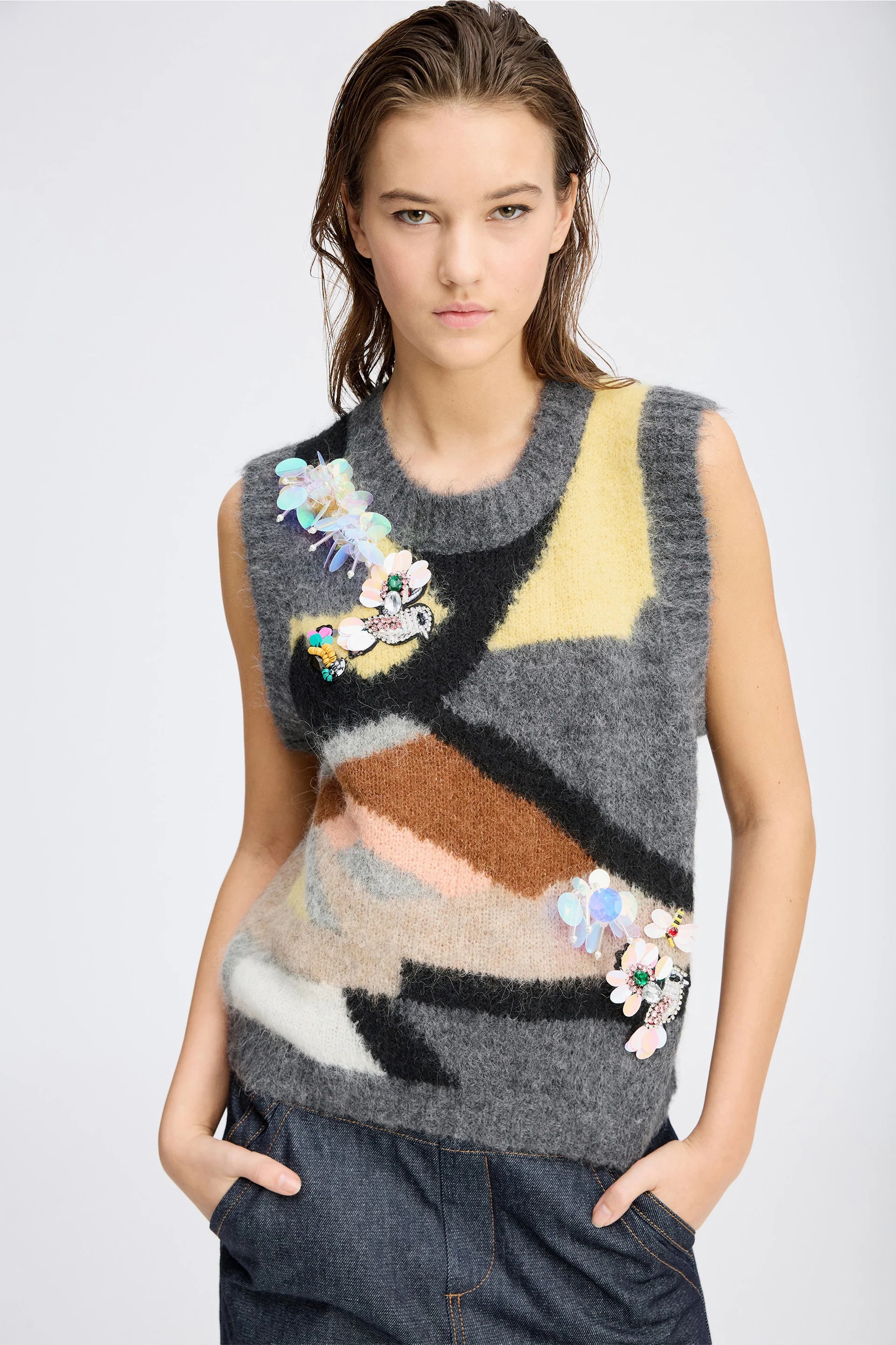 Stickad väst i ett unikt mönster med vackra pärldetaljer från Munthe.
