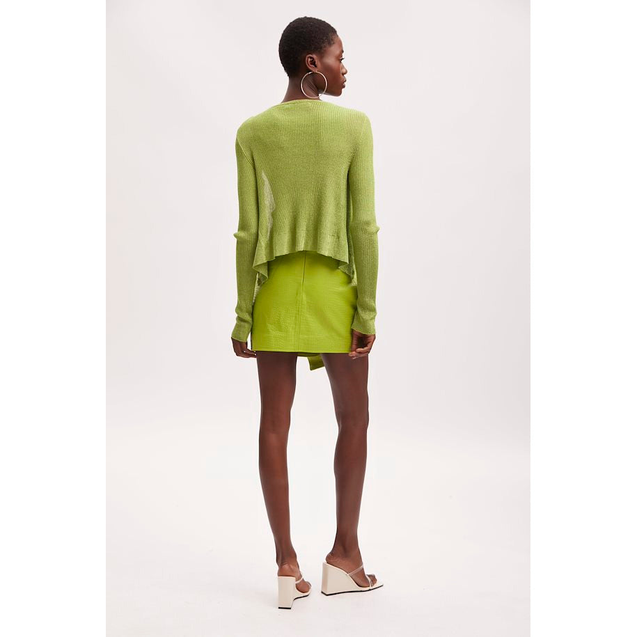 Kort kjol i en läcker limegrön färg! tillverkad i 100% lammläder. Snygg assymetrisk knäppning framtill som skapar en tufft intryck. Fickor i sidorna.