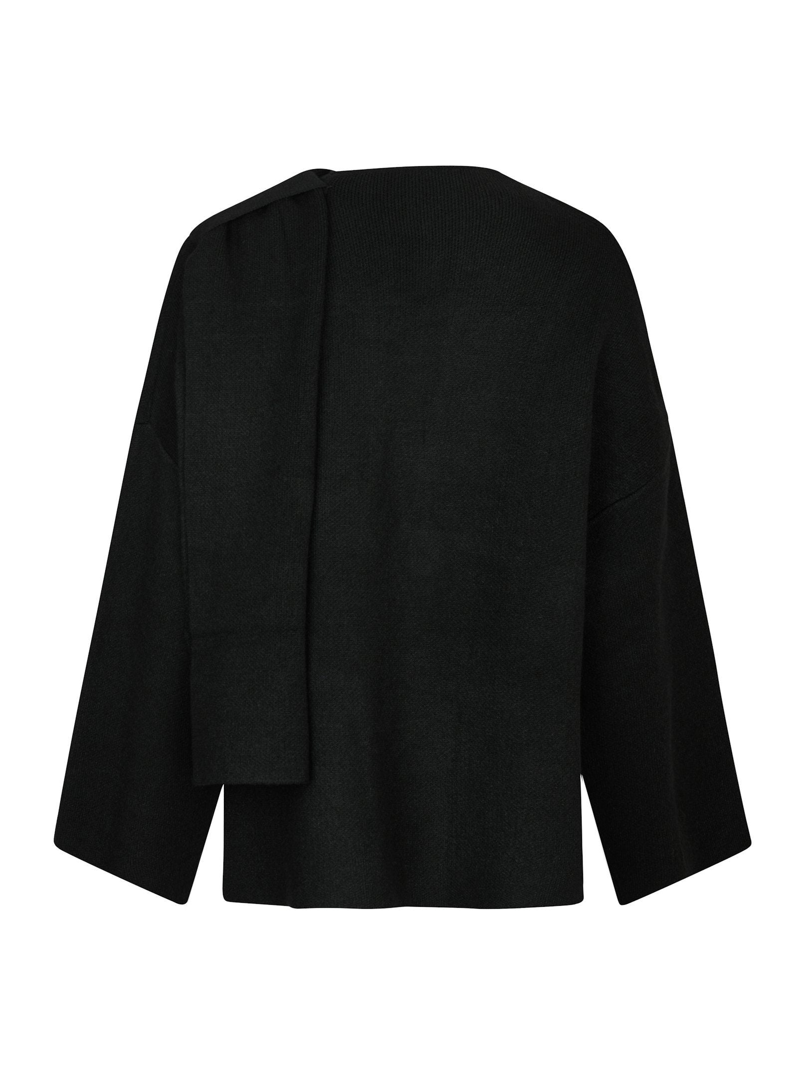 Svart stickad tröja med elegant sjaldetalj. Lös rak passform.